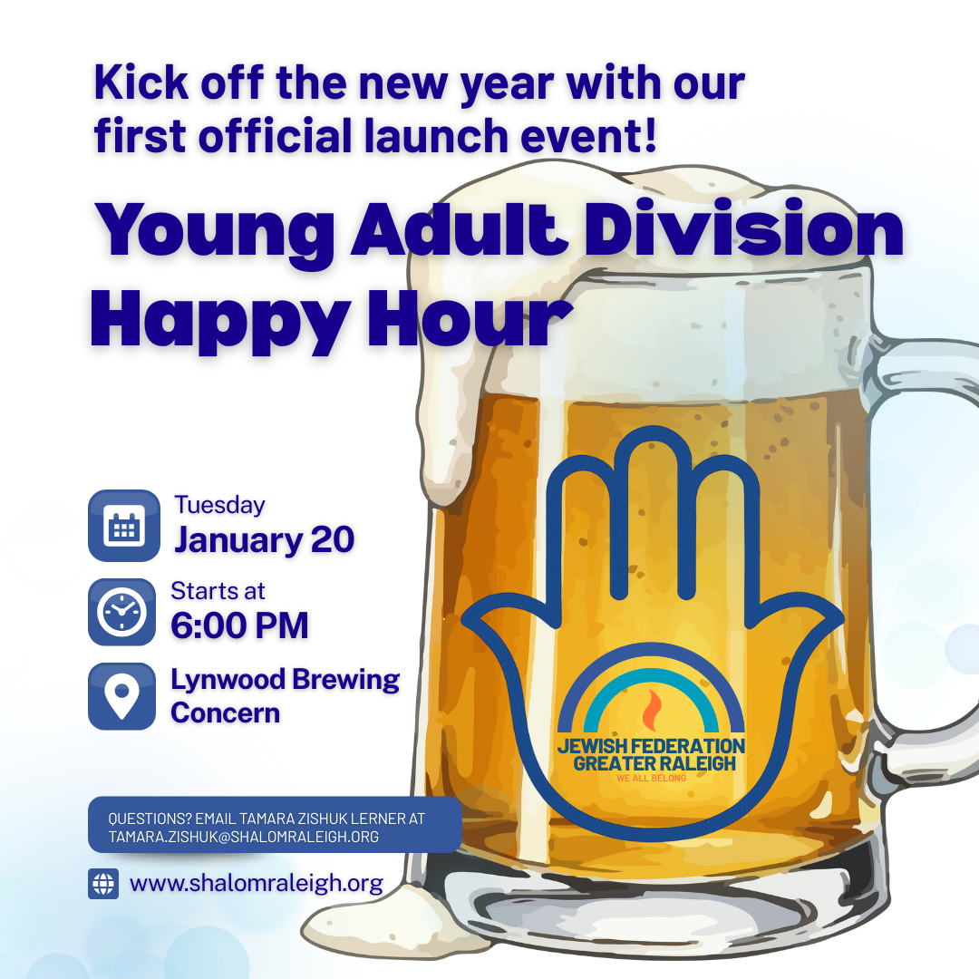 Program Description: Kick off the new year with our first official YAD launch event! Meet and mingle with other Jewish young adults (ages 22–45ish) in a fun, casual setting.